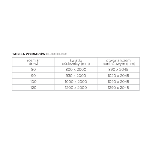 Min. wymiary otworu montażowego dla EI30/EI60: